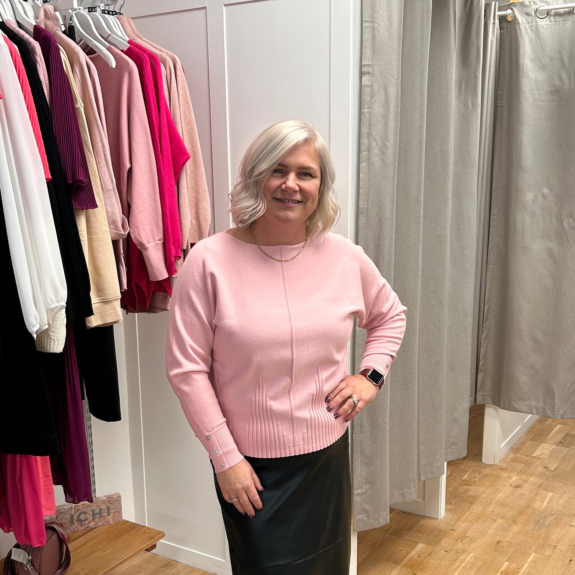 Expertly crafted from premium materials, the EDEN short length jumper boasts a stylish batwing design and intricate button cuff details. Its unique textured design and modern round hem make it perfect for the new season. Elevate your wardrobe with this versatile and on-trend piece.