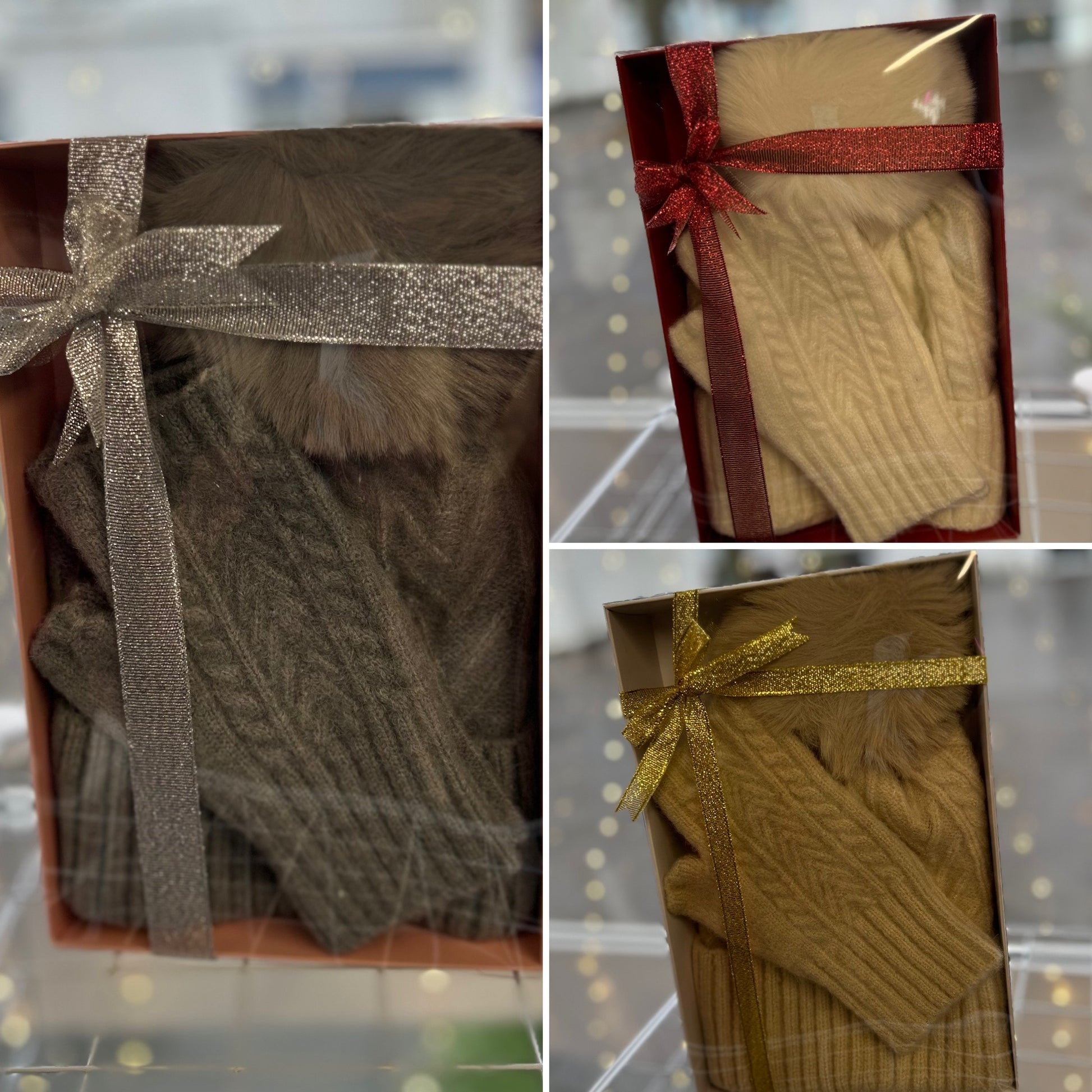 Our beautiful hat and fingerless gloves set is a perfect Christmas present, and comes in this lovely gift box with ribbon.