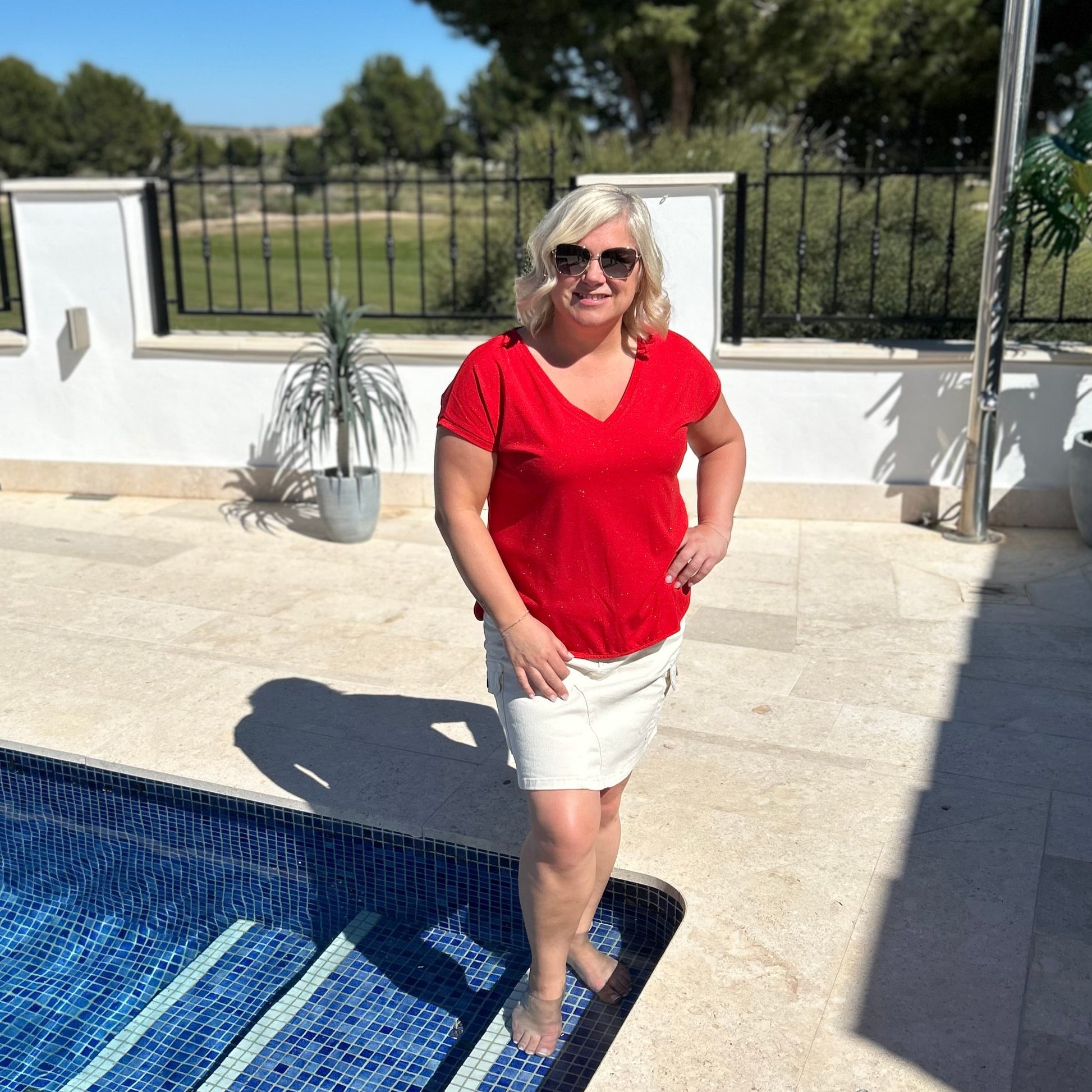New arrival to our ICHI collection is this classic REBEL t-shirt. Curved hem with small side splits and slightly longer at the back. This 'V' neck T-shirt features a casual fit and a regular length of 65.5 cm, perfect for size XS. Made with a composition of 46% Polyester, 46% Viscose, 5% Elastane, and 3% Metallic Yarn, this T-shirt is both comfortable and stylish.